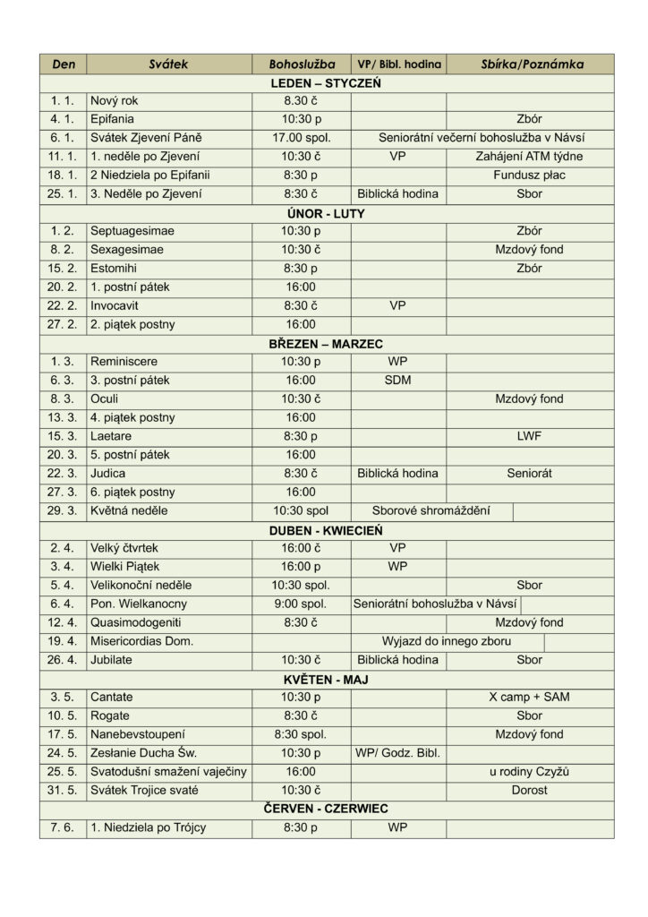 Program bohoslužeb 2026